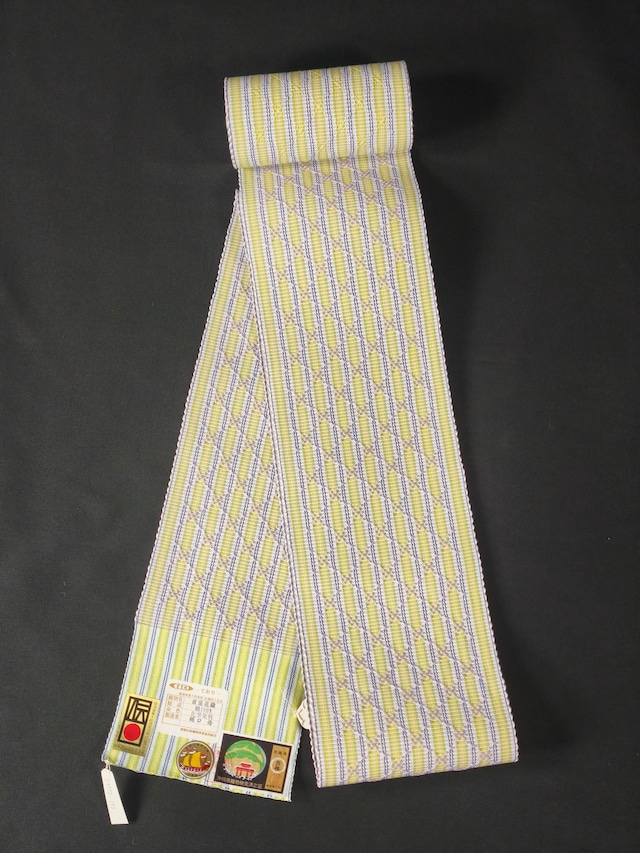半幅帯|首里花織|イエロー×ホワイト×グリーン地