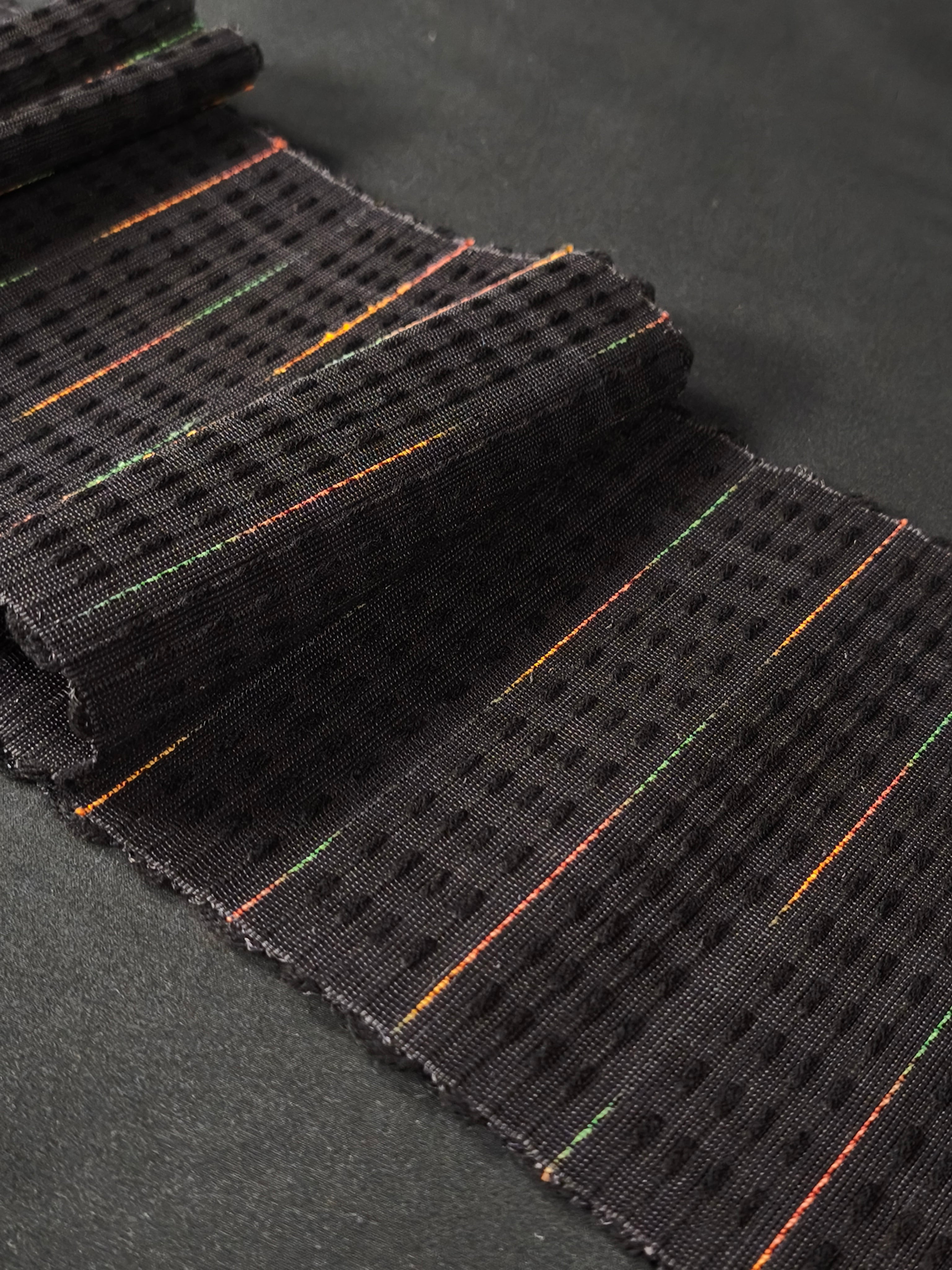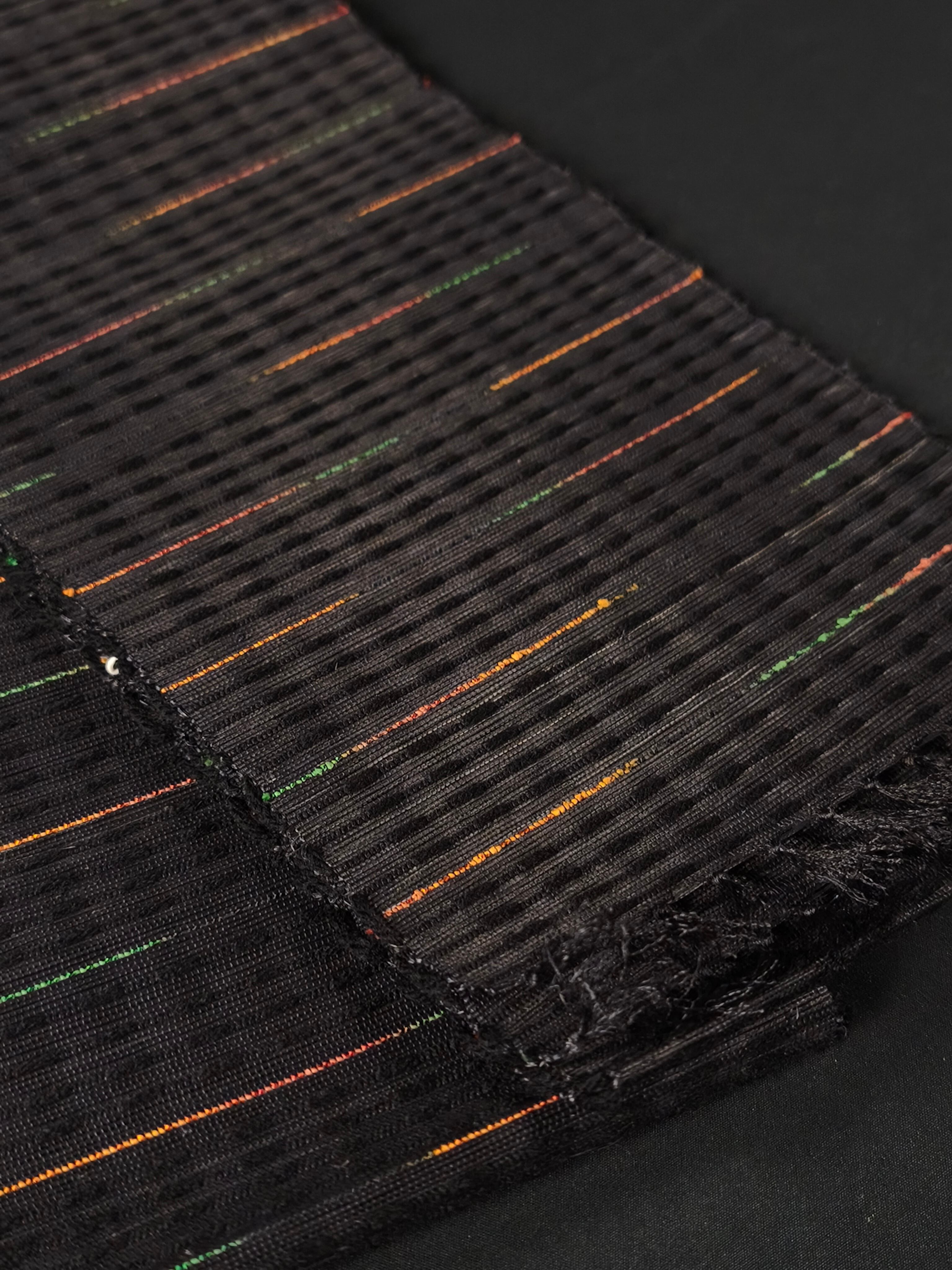 同じく出品しております「半巾帯|誉田屋源兵衛|芭蕉段織 黒②」は、同色ですが色糸の入り方が違います。