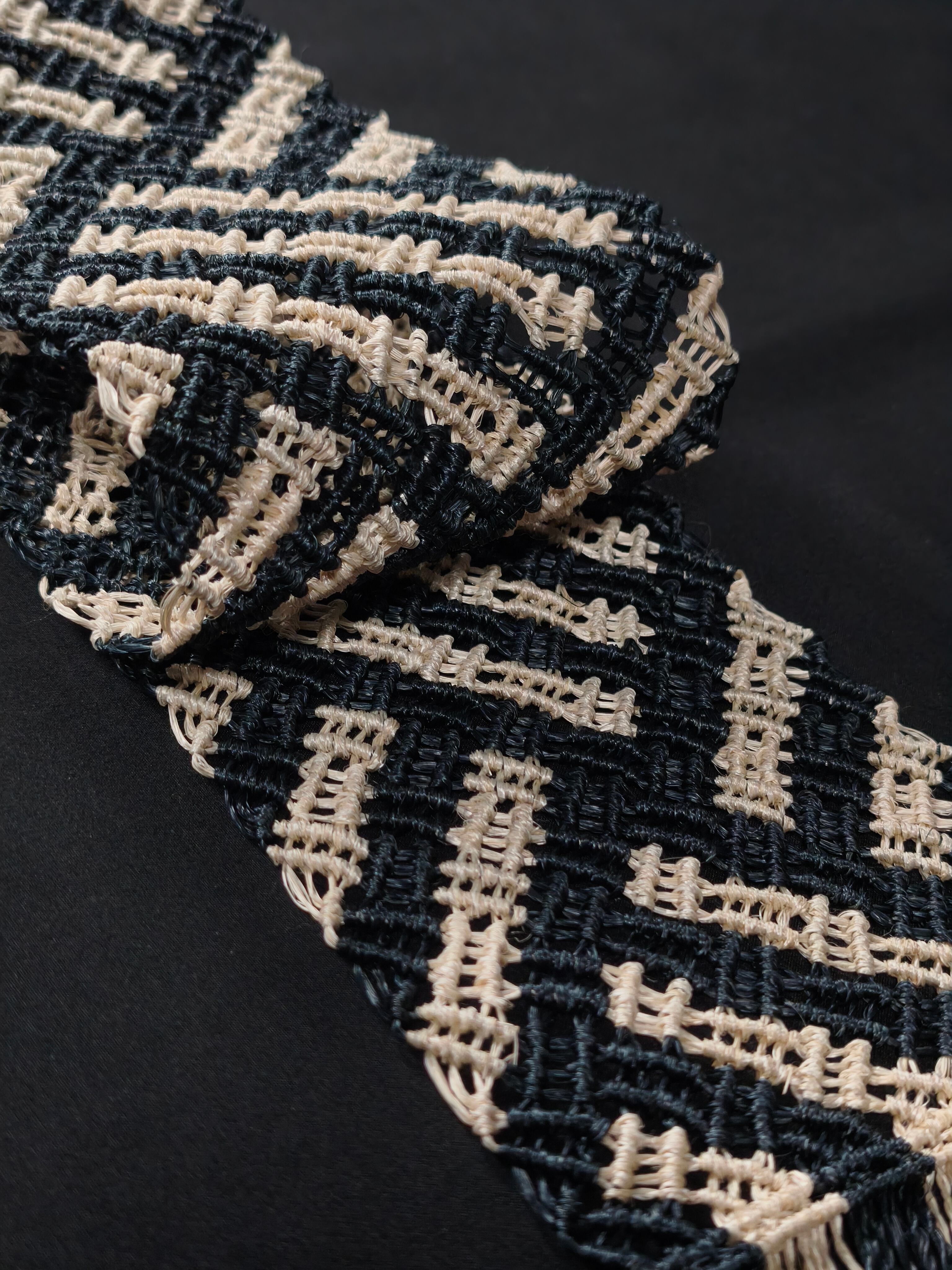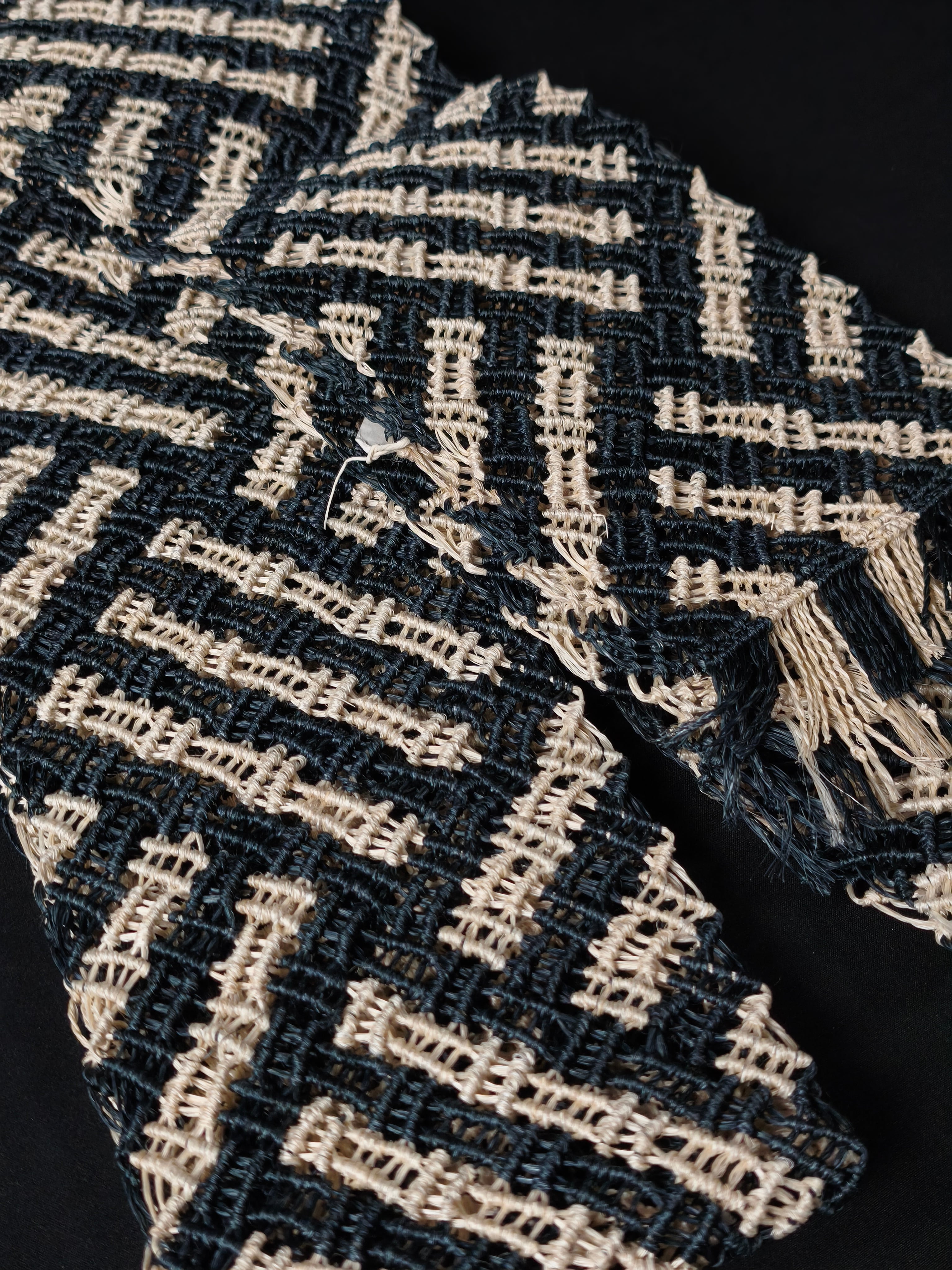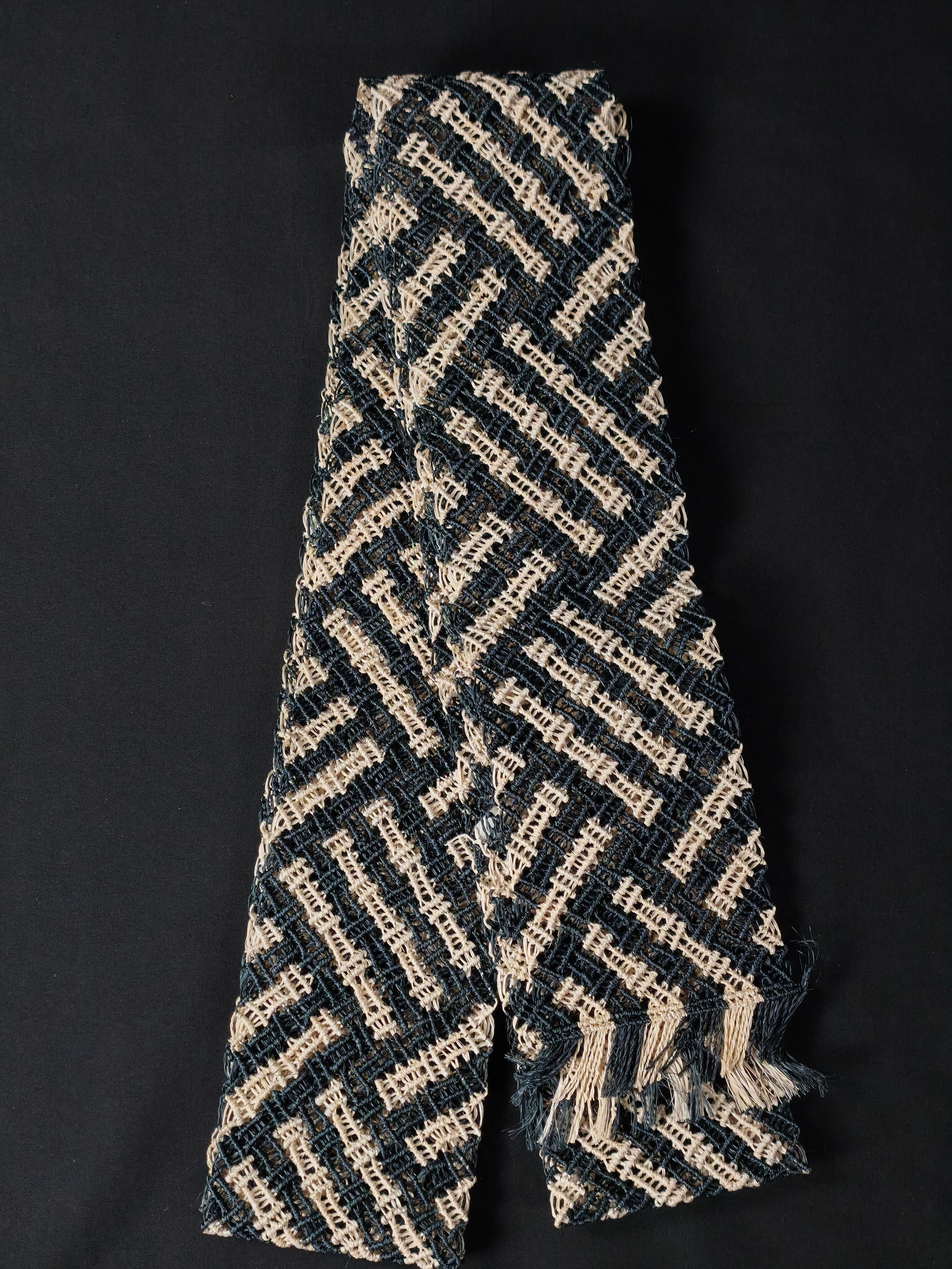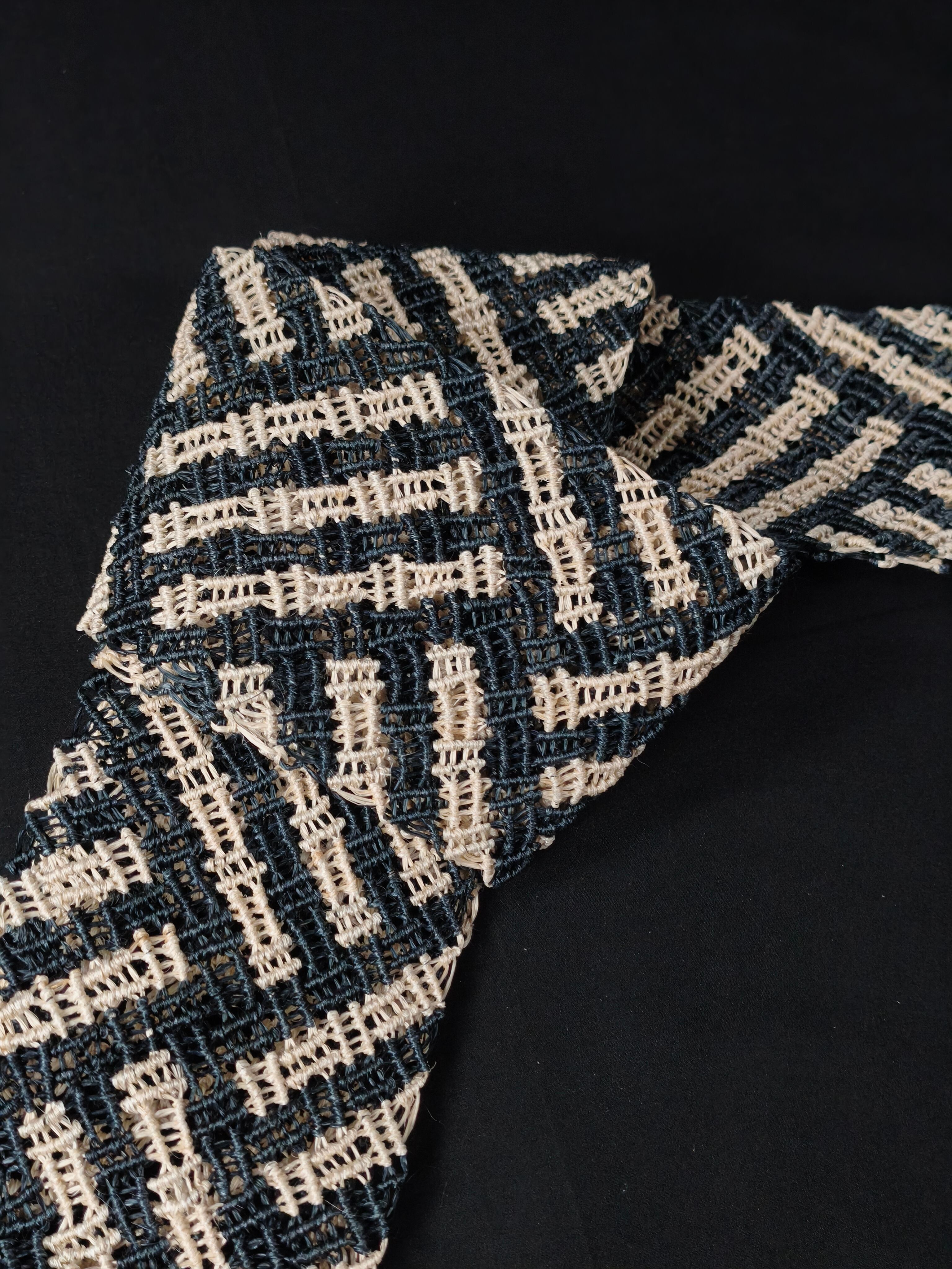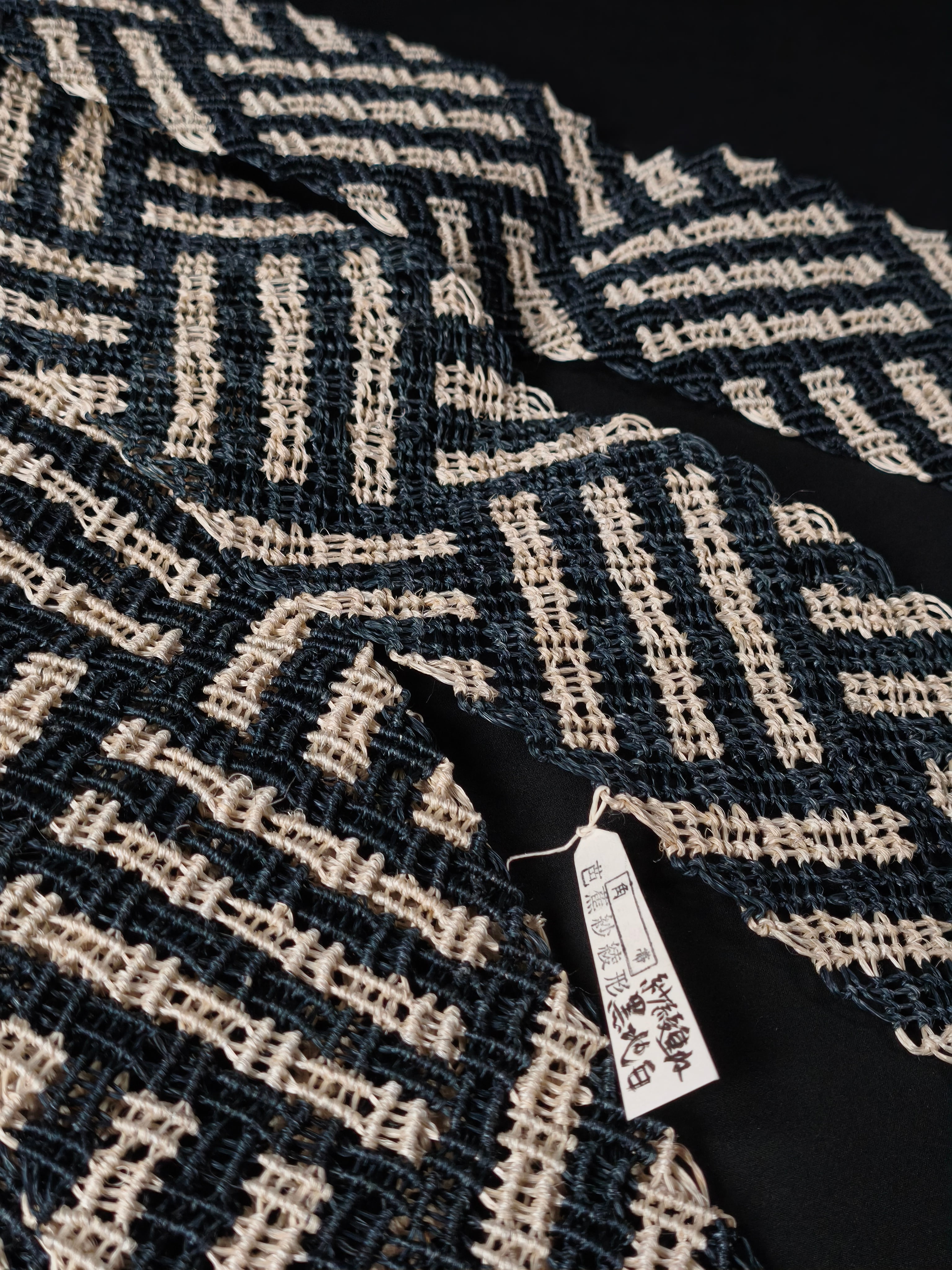 芭蕉科の多年草(糸芭蕉)の繊維で織られ、麻より硬い繊維の為ハリがあり、最初は少々硬さを感じますが、締め心地の良い帯です。