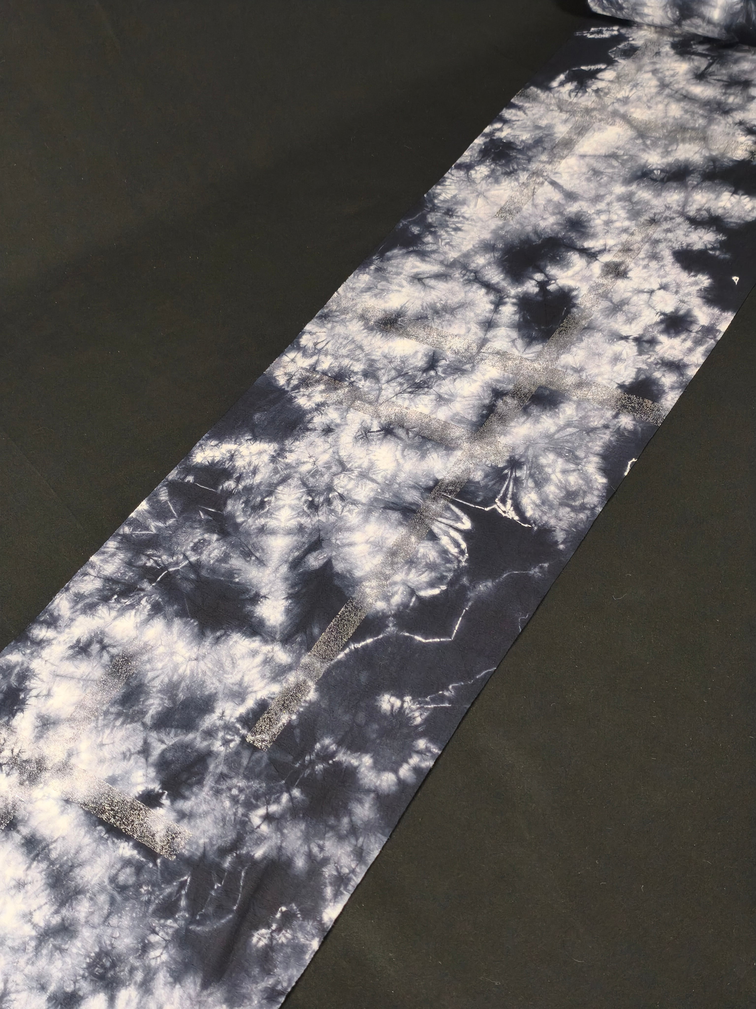 籠に生地を詰める際に出来る不規則な柄が特徴で、2枚と同じ物はない魅力的な染色方法となっております。