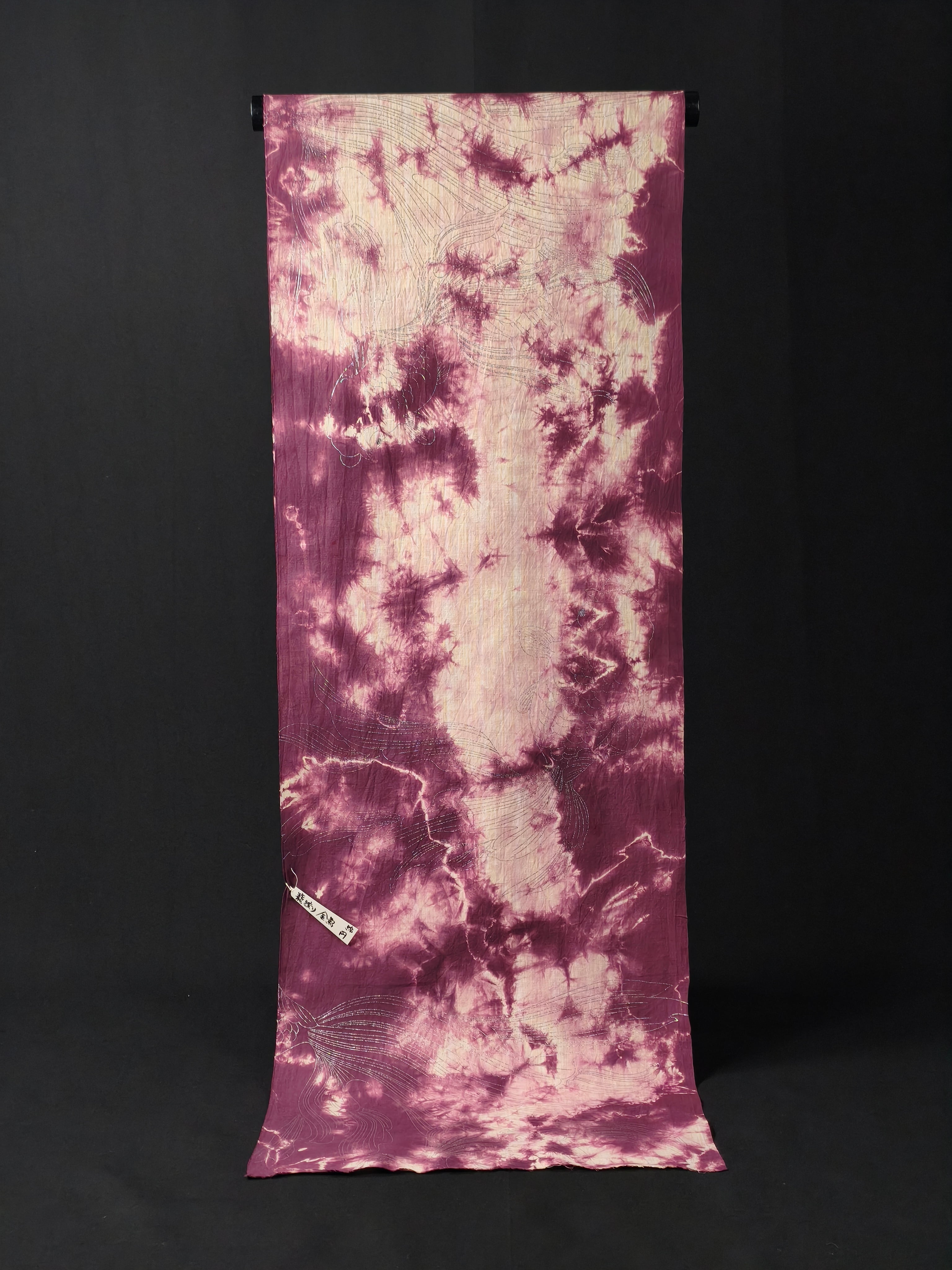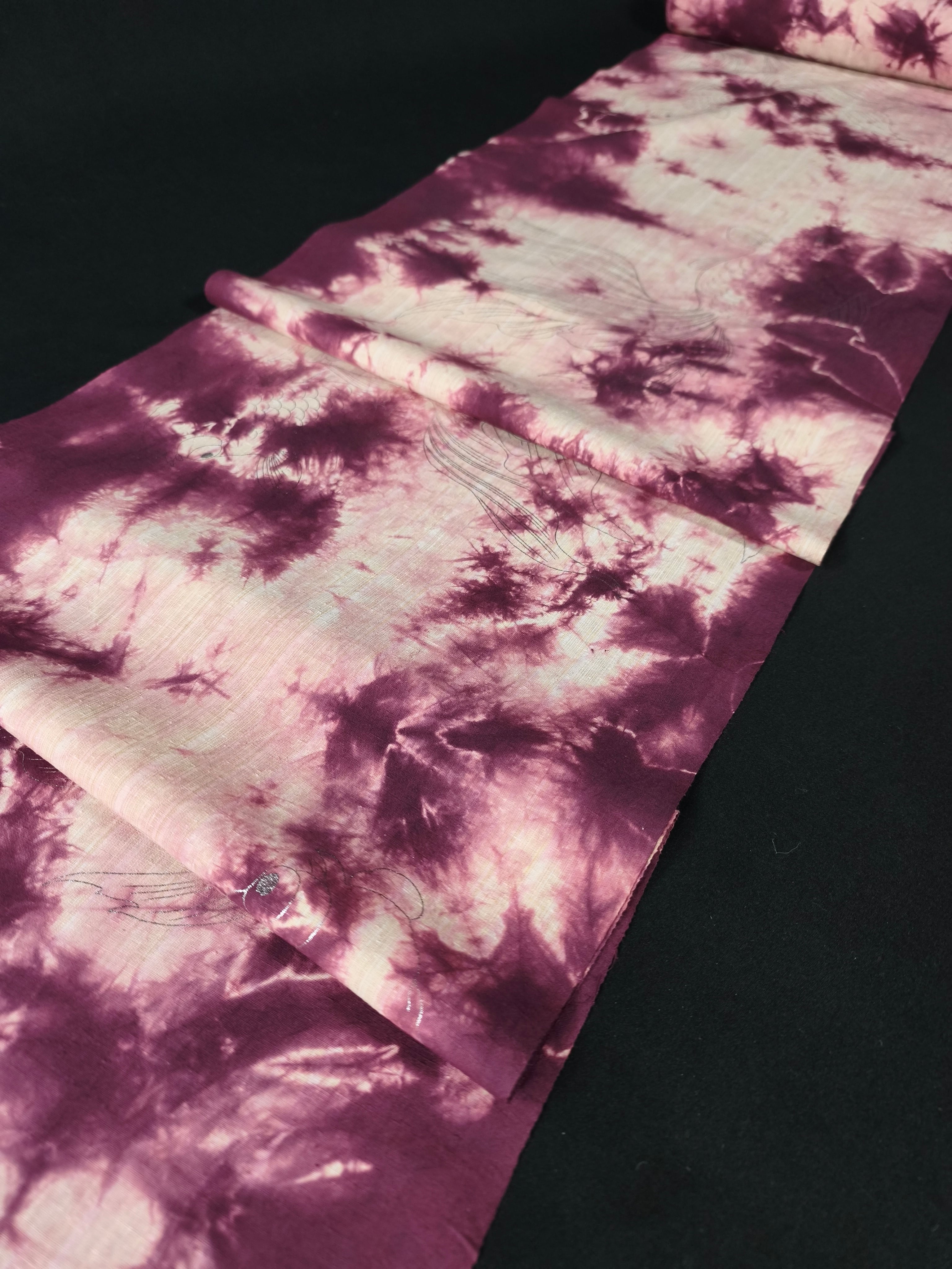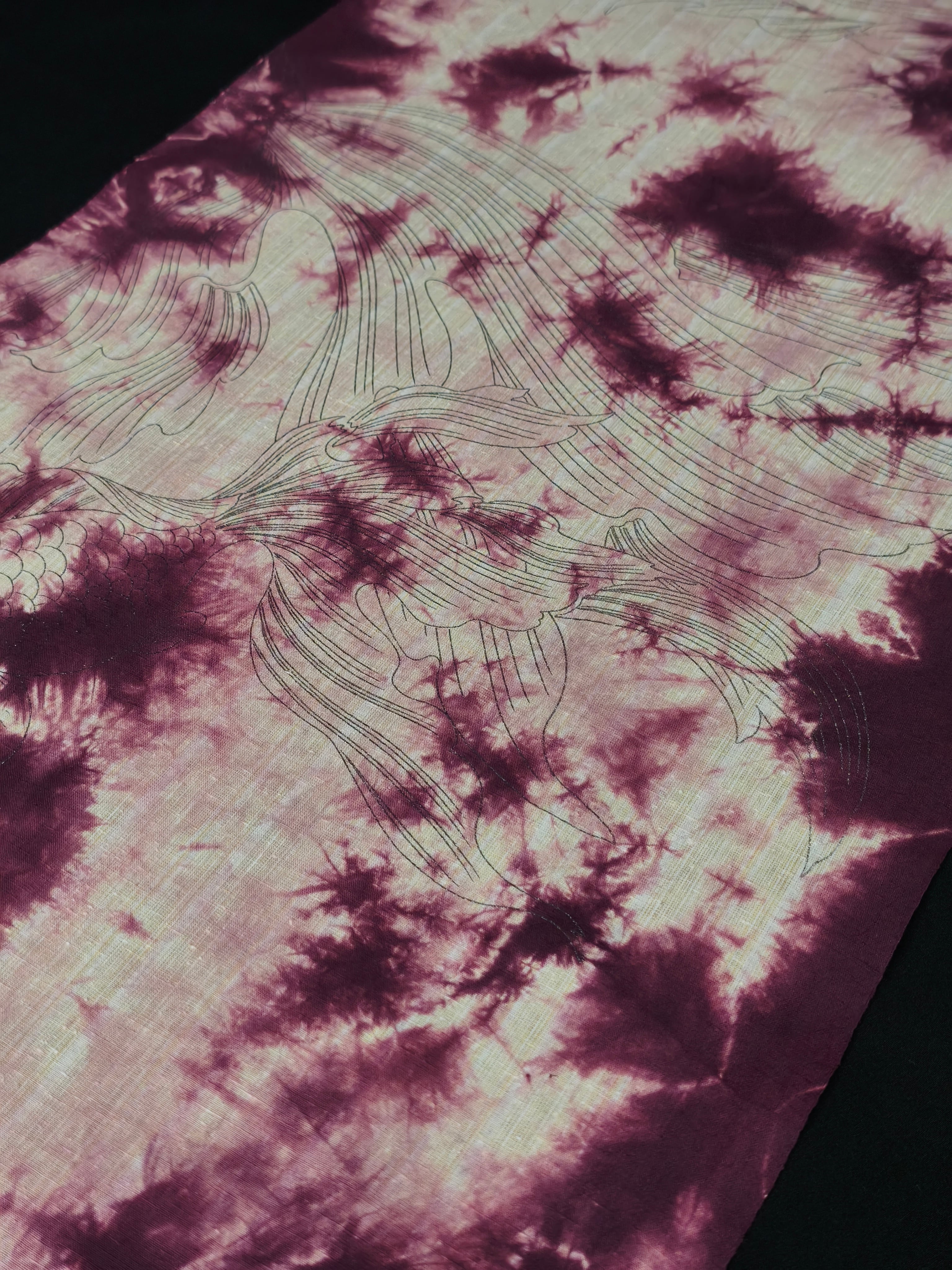 籠に生地を詰める際に出来る不規則な柄が特徴で、2枚と同じ物はない魅力的な染色方法となっております。