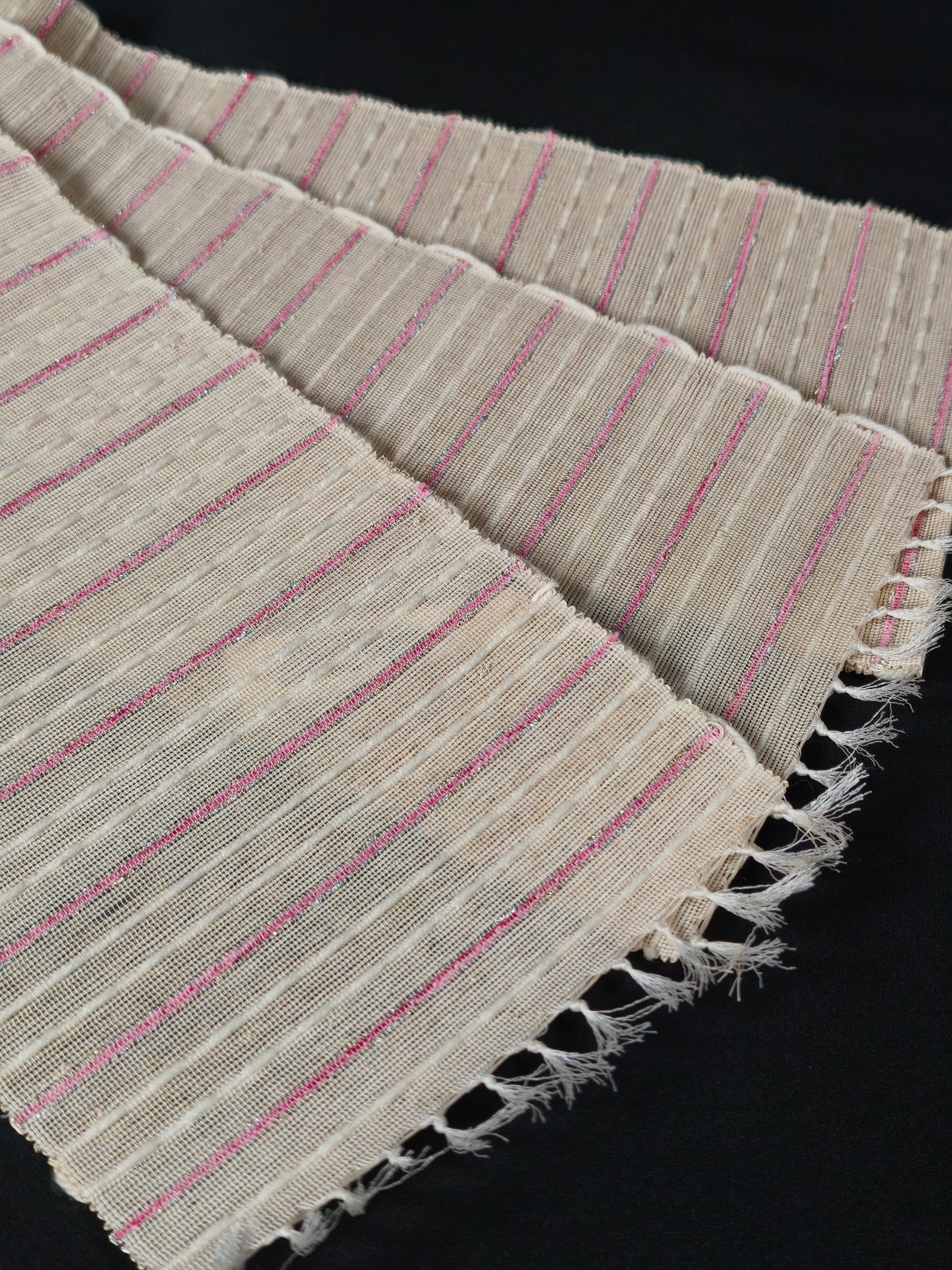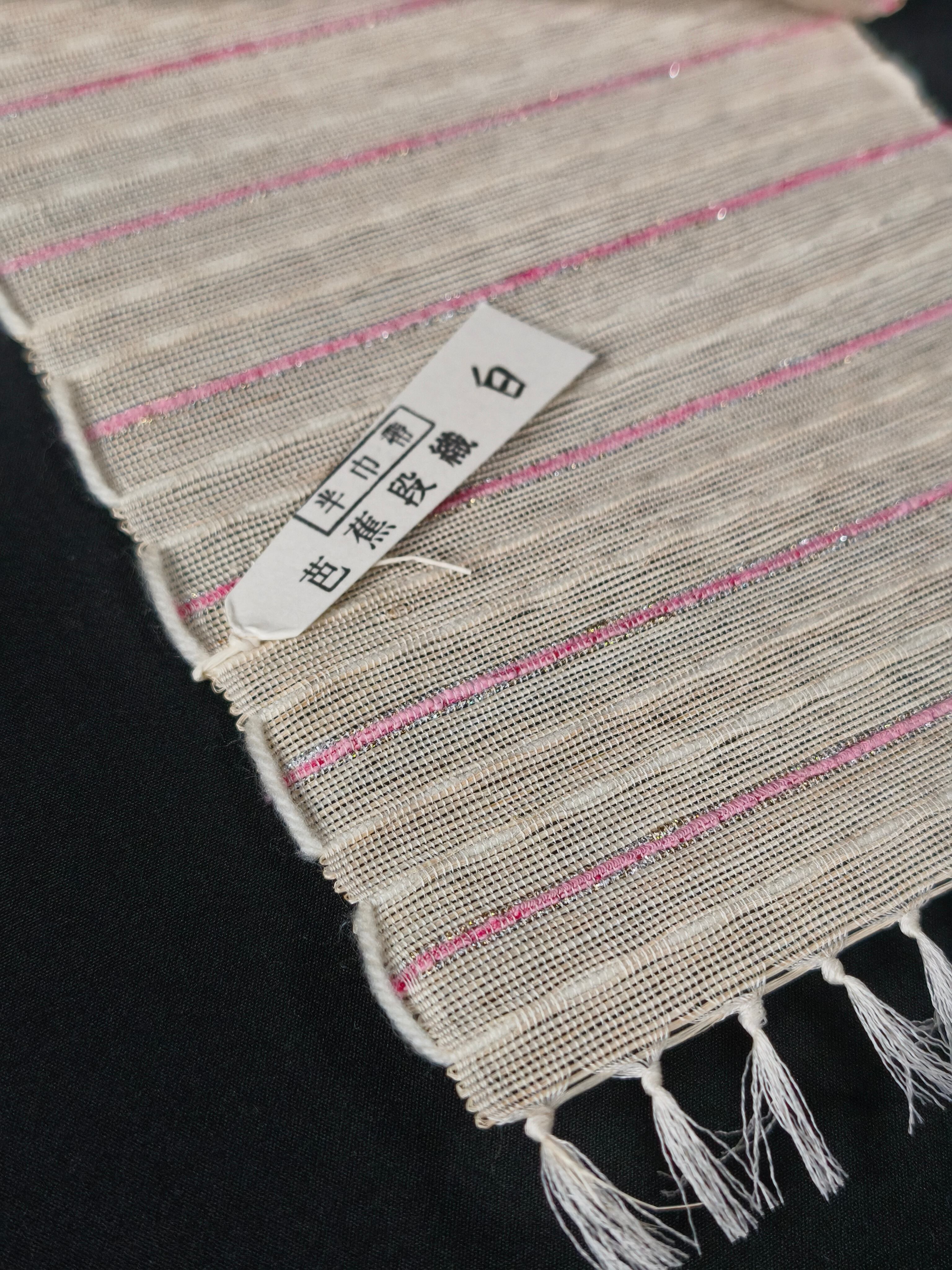 半巾帯|誉田屋源兵衛|芭蕉段織 白×ピンク
