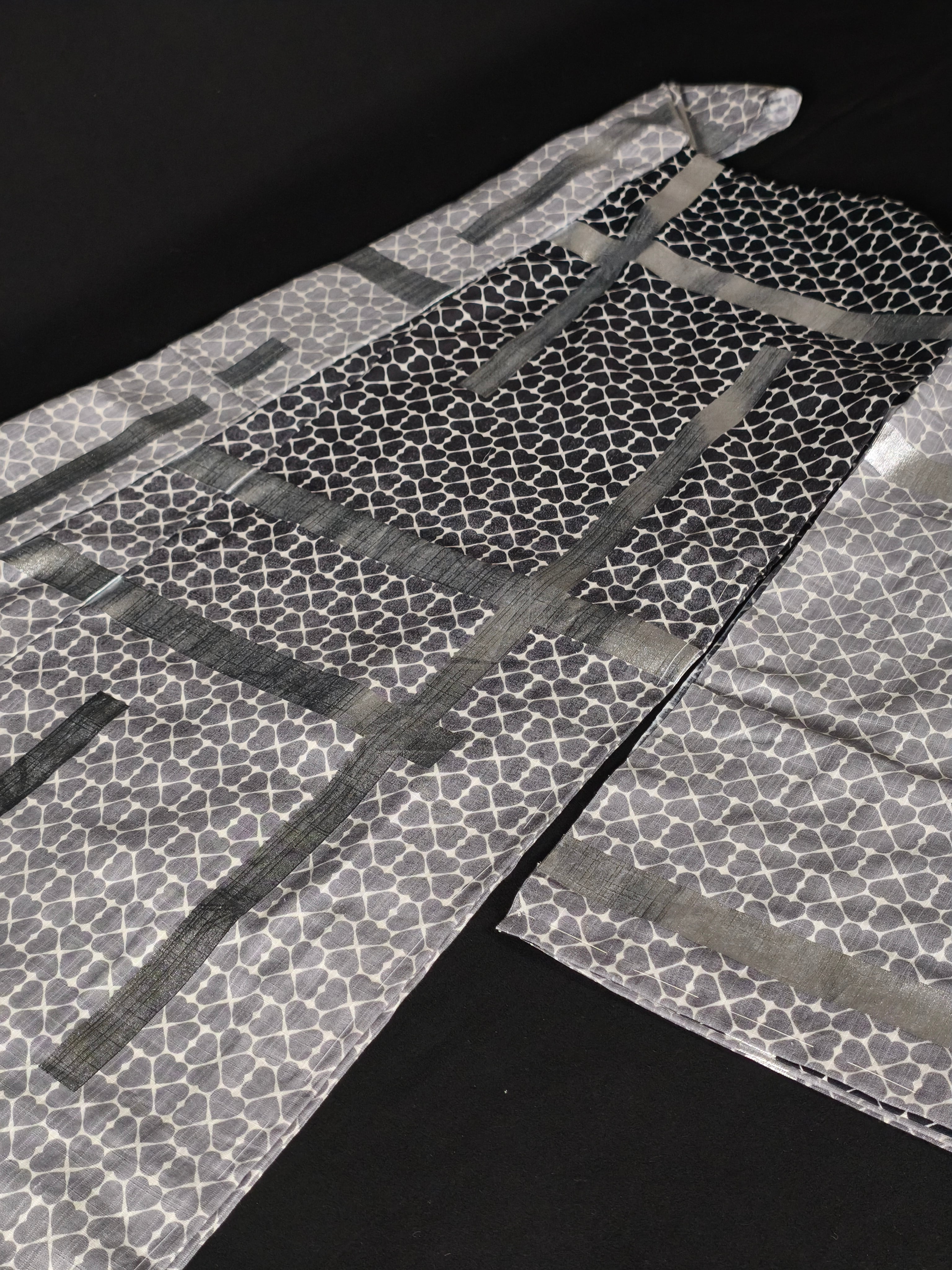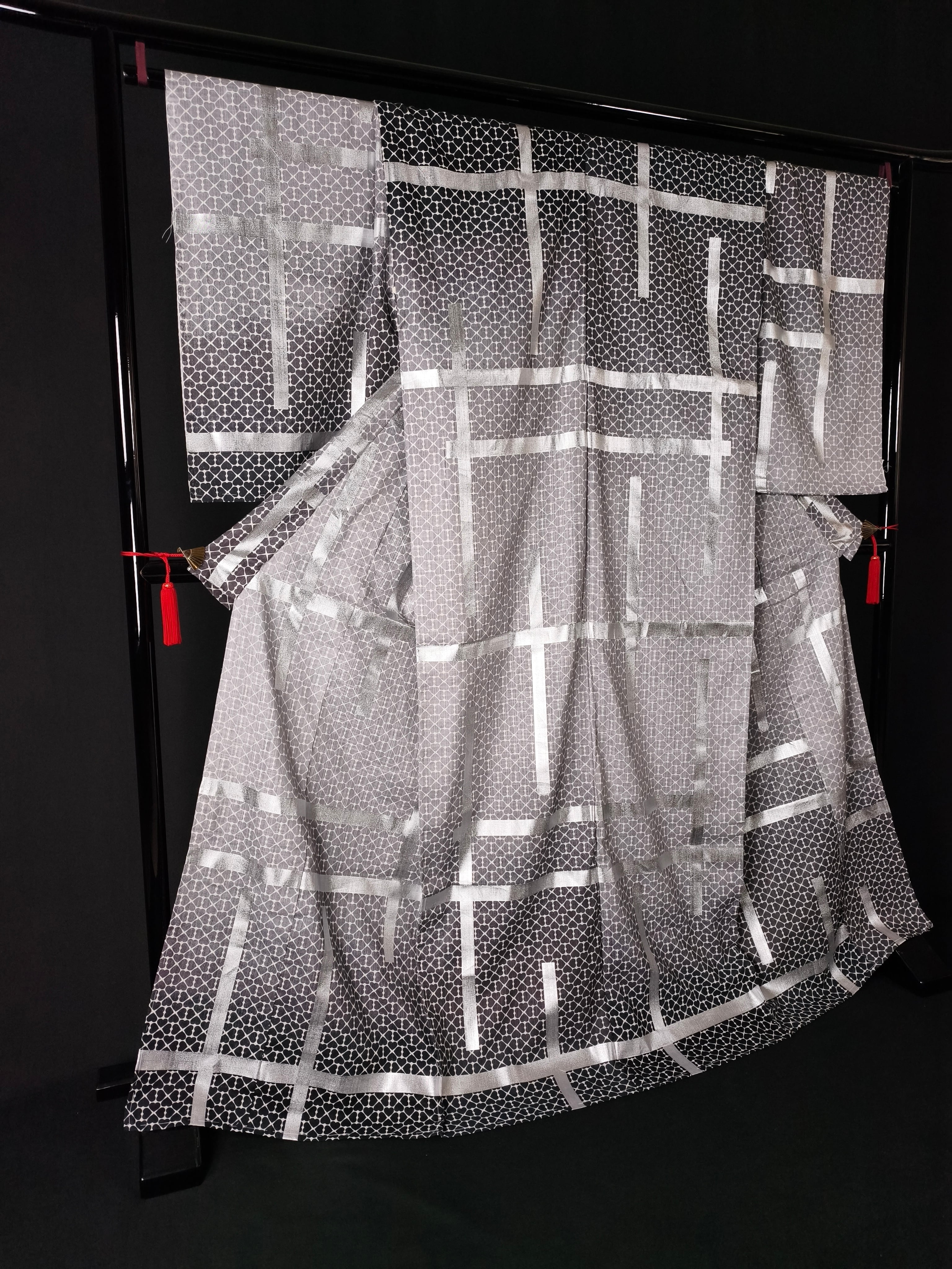 浴衣|誉田屋源兵衛|「幸運」破れ格子 白/黒/シルバー